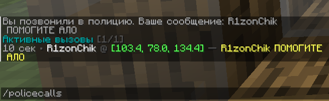 | /policecall [сообщение] | Вызов полиции с координатами | Все игроки |