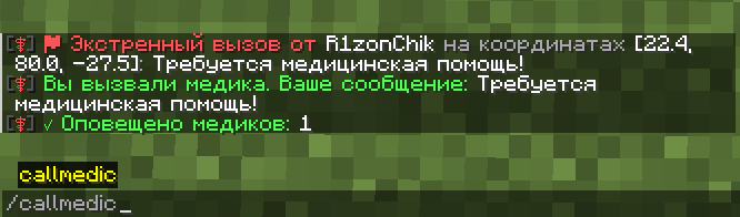sent: "{prefix}&aВы вызвали медика. Ваше сообщение: &f{message}"