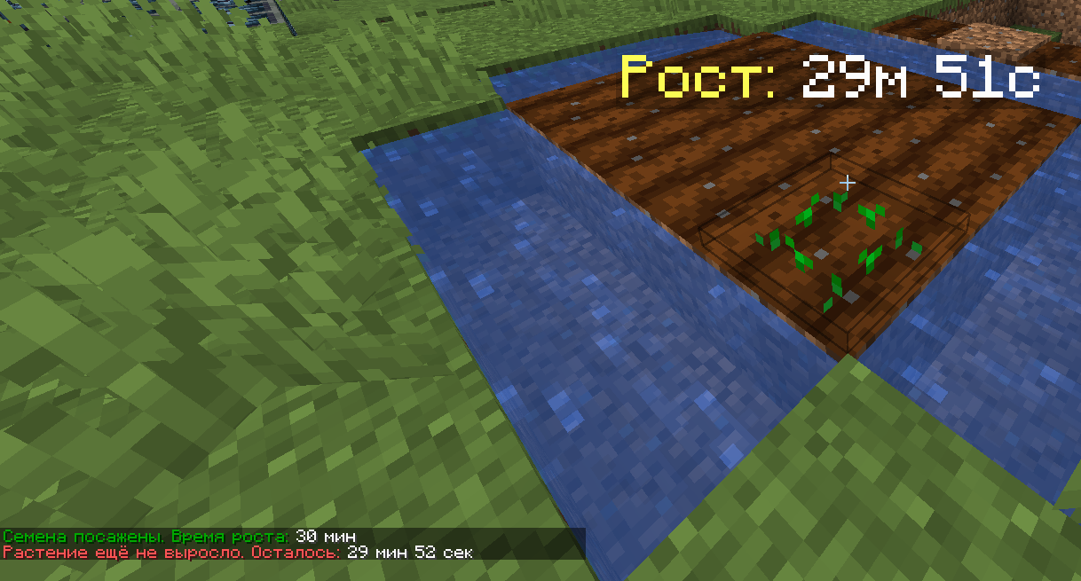 • 🌿 Фермерство и рост растений — посадка семян, стадии роста, голограммы над растениями, сохранение в crops.yml